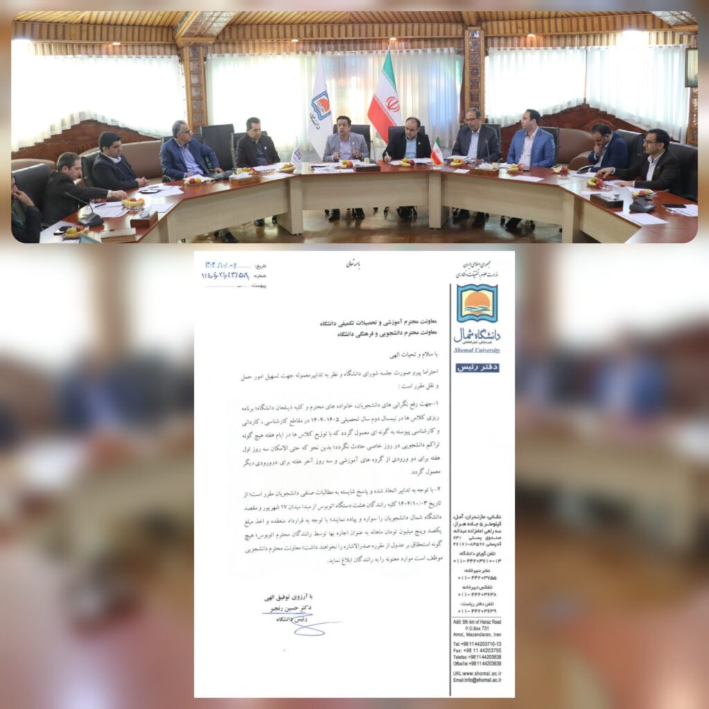 اطلاعیه مهم شورای دانشگاه در خصوص برنامهریزی آموزشی و حملونقل دانشجویان