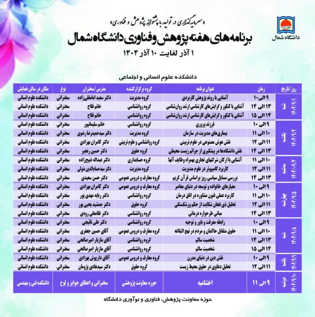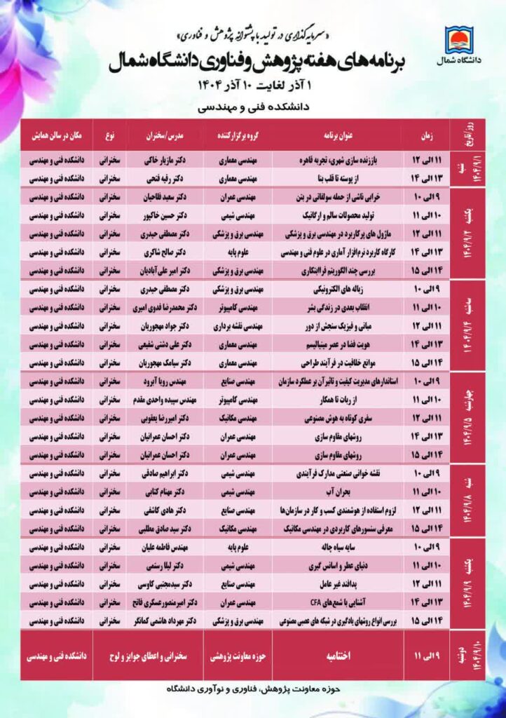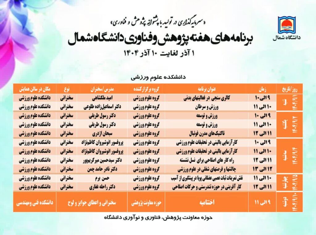 برنامههای هفته پژوهش و فناوری سال ۱۴۰۴ دانشگاه شمال