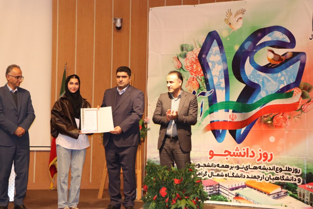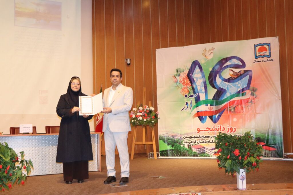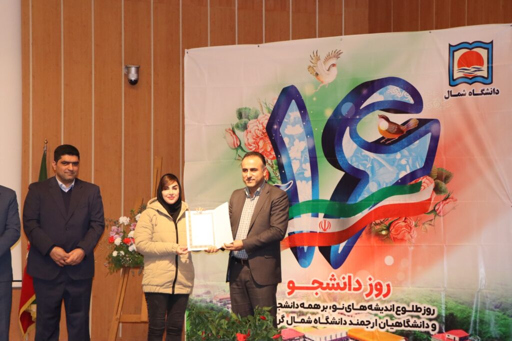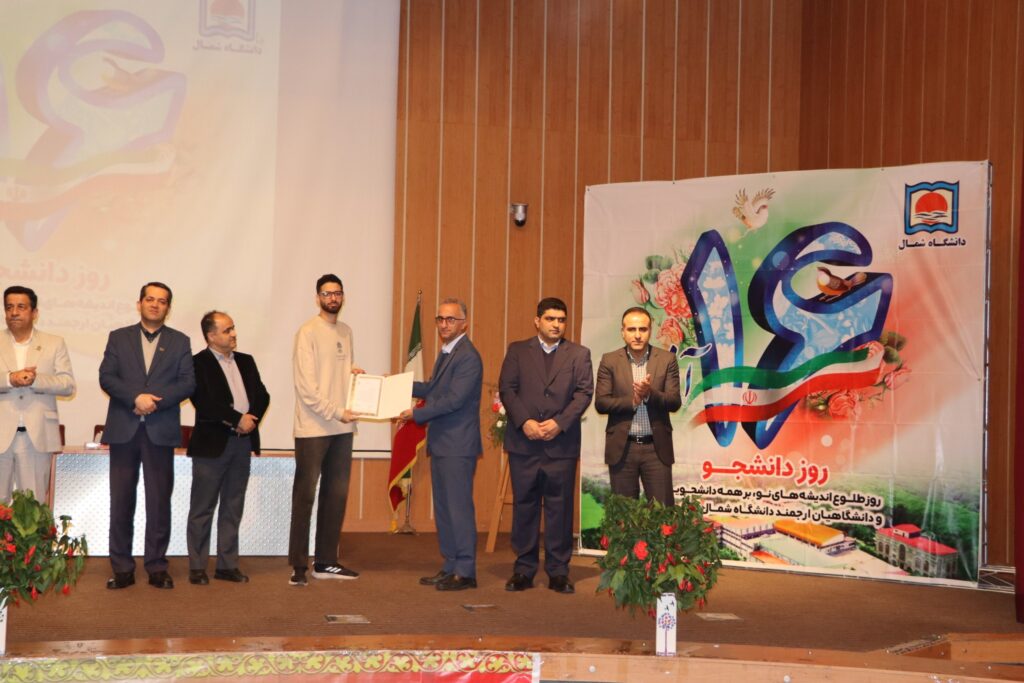 در پایان از دانشجویان برتر دانشگاه در مقاطع مختلف از کارشناسی تا دکتری با اهدا لوح و مدال افتخار دانشگاه شمال تقدیر گردید.