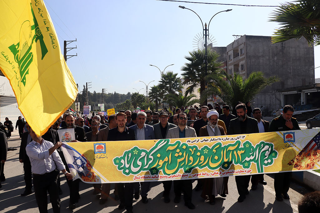 به گزارش روابط عمومی دانشگاه شمال، دانشجویان، اساتید و کارکنان دانشگاه شمال با حضور هیات رئیسه، همگام با آحاد مردم در سراسر کشور، در راهپیمایی یوم الله ۱۳ آبان روز ملی مبارزه با استکبار جهانی، شرکت نمودند.
