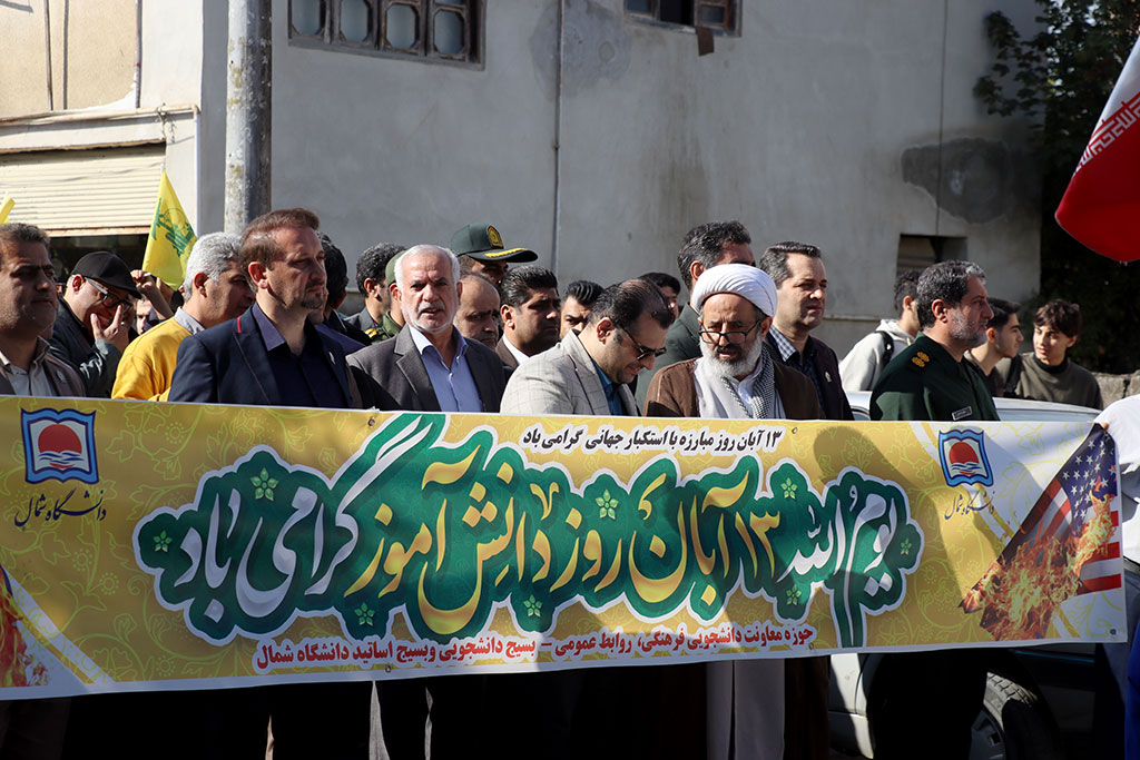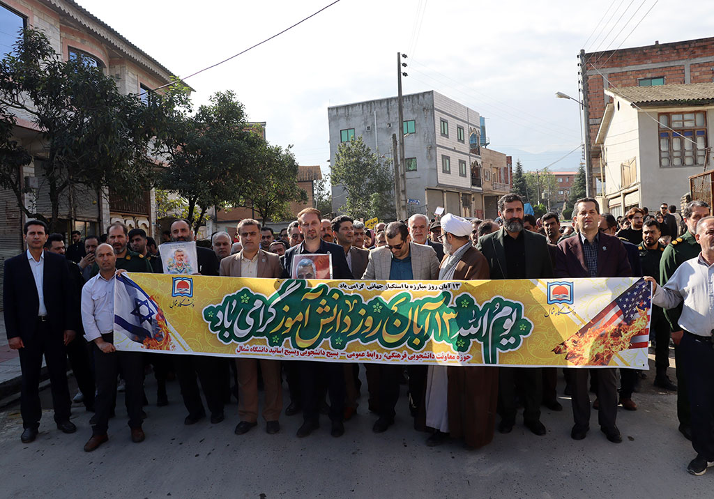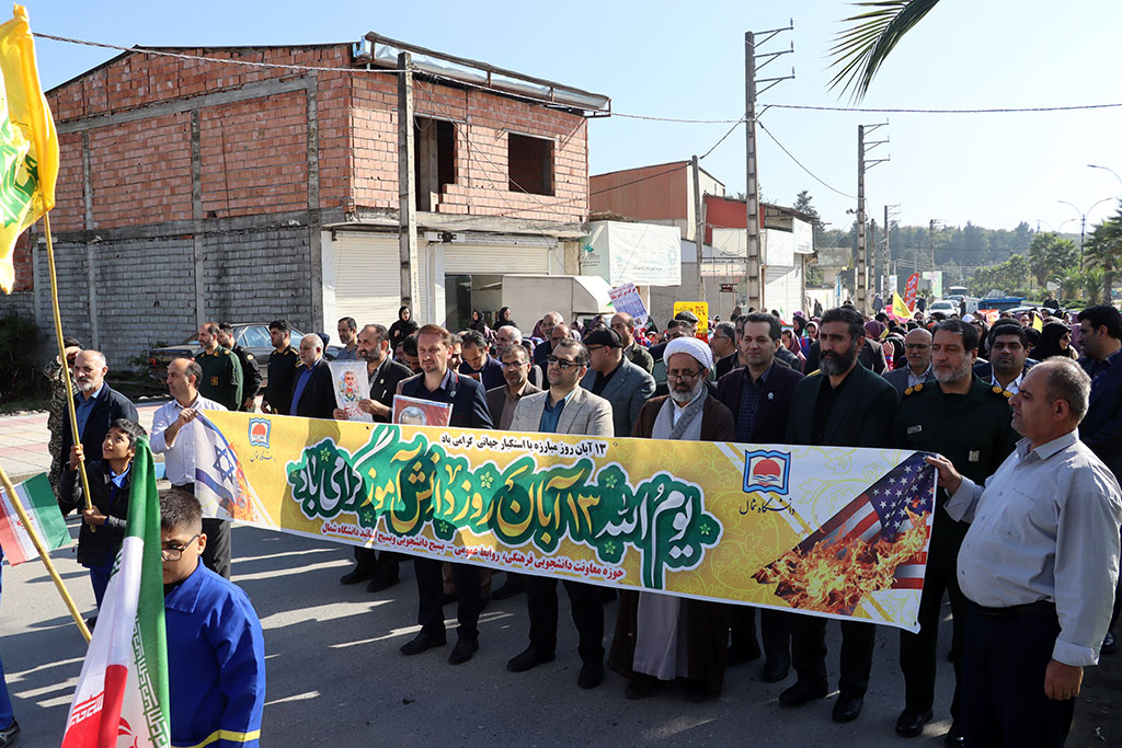 حضور گسترده دانشگاهیان دانشگاه شمال در راهپیمایی ۱۳ آبان شهر امامزاده عبدالله